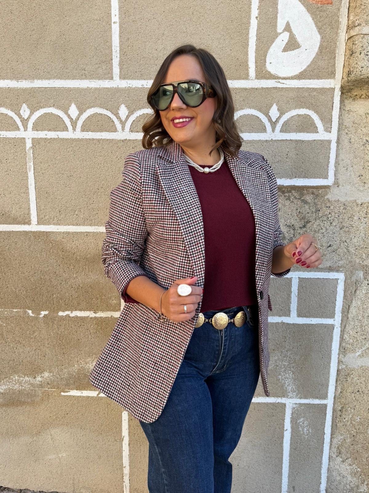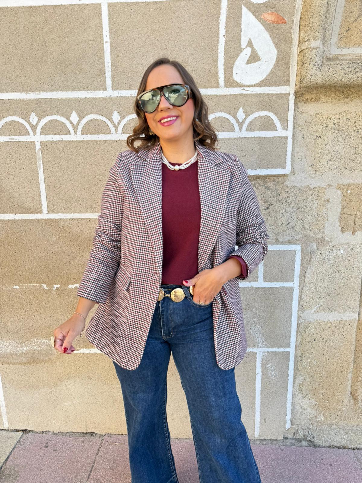 Americana Pata de Gallo Burdeos