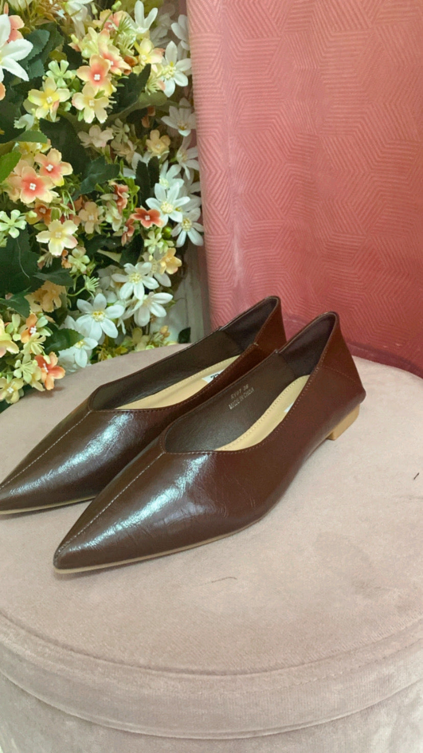 Manoletina de polipiel con acabado en pico suela de goma antideslizante.