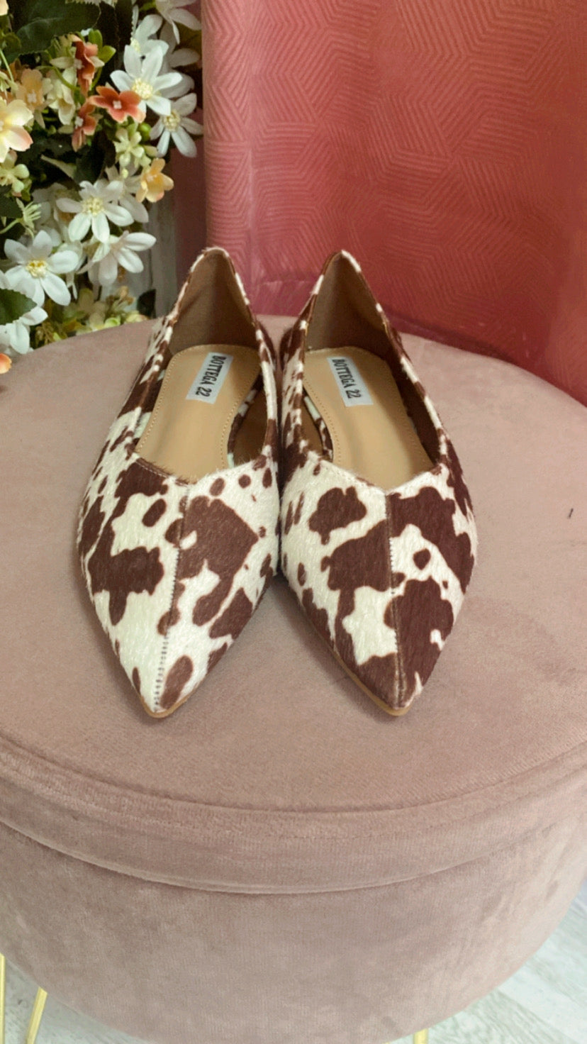 Manoletina con polipiel de vaca , acabado en pico con suela de goma antideslizante.