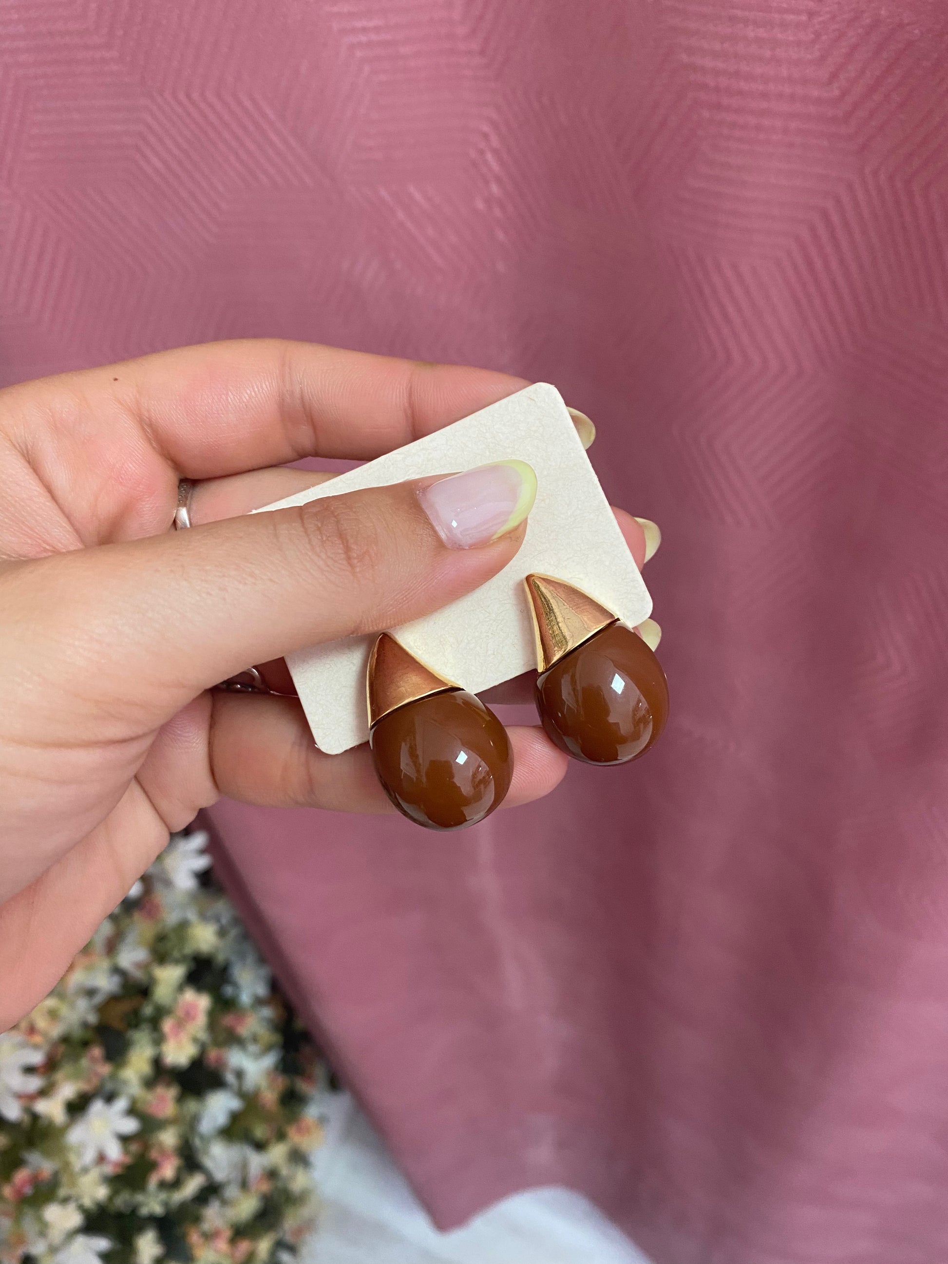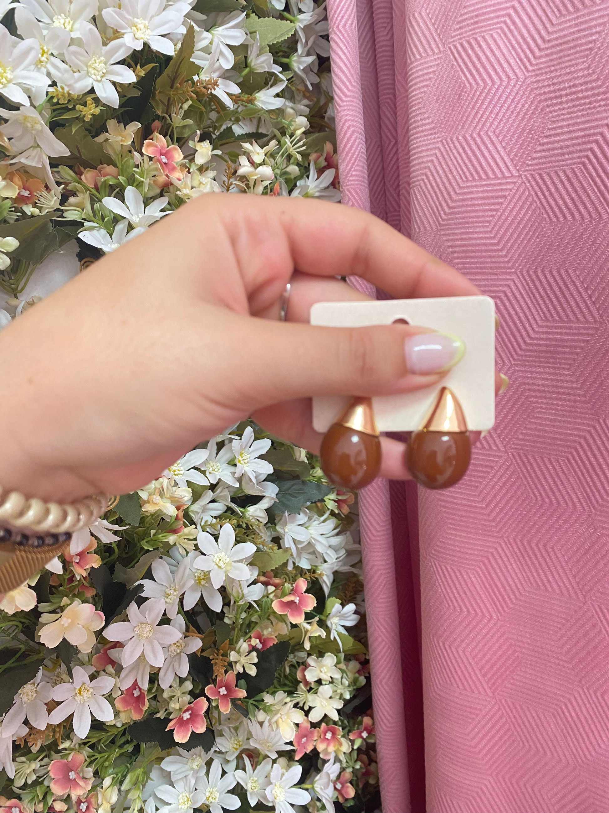 Pendiente de Acero Antialérgico, en marrón y dorado.